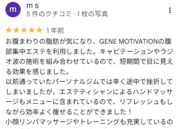 GENE MOTIVATION ジーンモチベーションへの口コミ腹部集中ケアで、お腹まわりの変化を実感できました